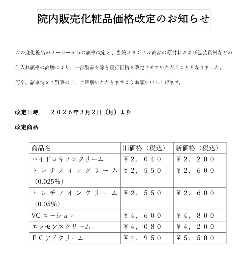 化粧品価格改定のお知らせ